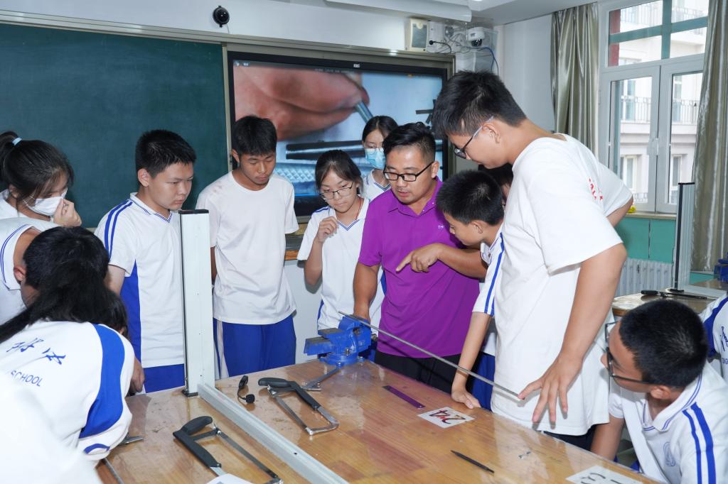 在金工、木工基础课堂上,老师精细示范并讲解了升降栓的制作流程。同学们争先恐后地询问老师操作细节,对已经切割完成的作品爱不释手。