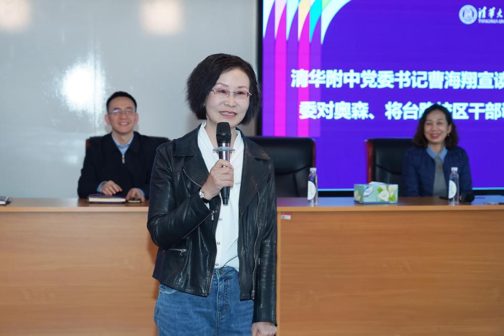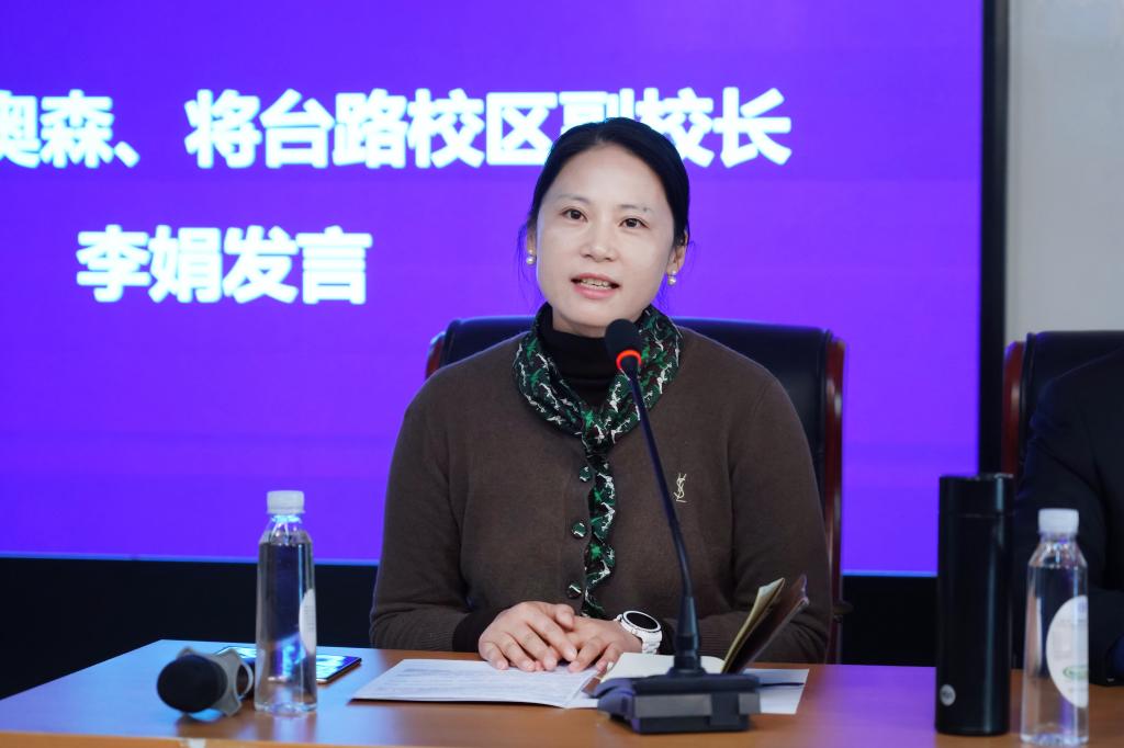 皇冠体育奥森、将台路校区副校长李娟在发言中感谢附中党委的培养信任和两校区全体师生的厚爱,她表示,在附中党委的领导下,将以新的姿态、新的境界尽快进入新的角色,做好两校区的各项工作,以更加奋发有为的精神状态和更加优异的工作成绩,不断开创两校区高质量发展新局面。