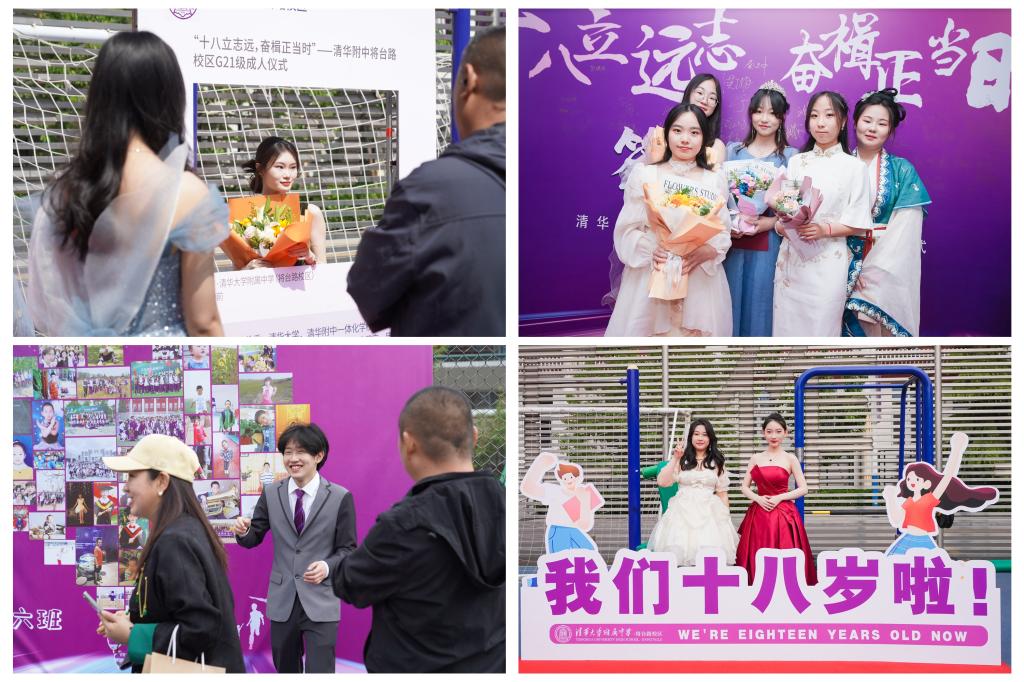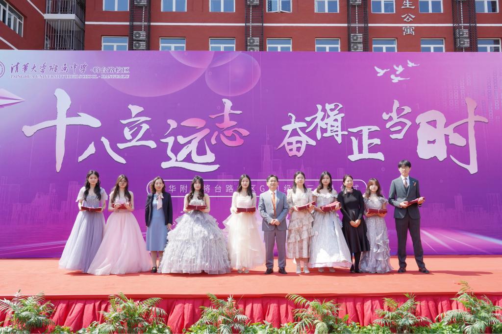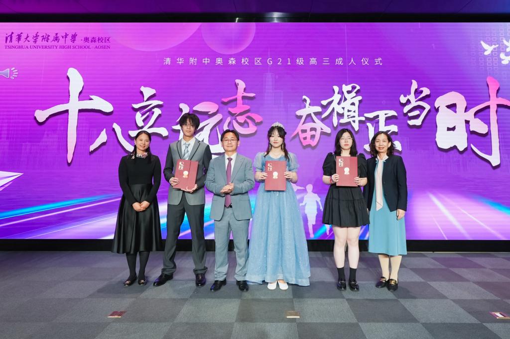 将台路校区高三(3)班李金泽、奥森校区高三(3)班张傲带领全体高三学生在国旗下庄严进行成人宣誓。校领导们为各班代表颁发成人证书,学生们的人生从此正式开启新的篇章。