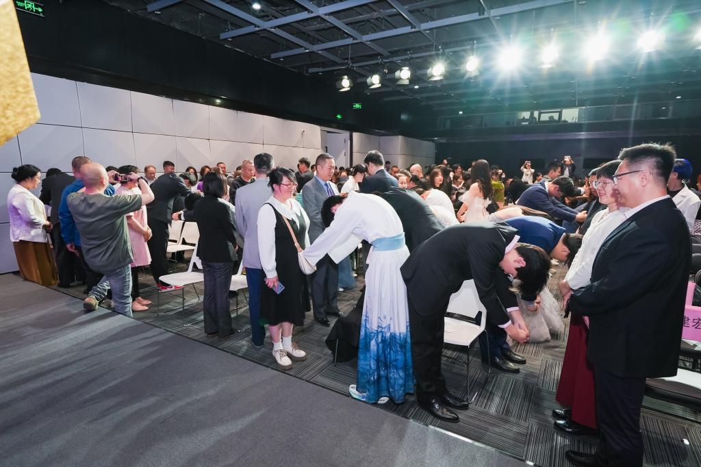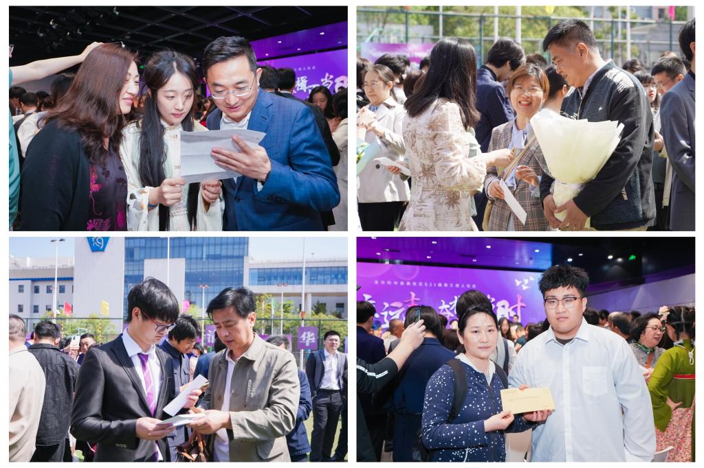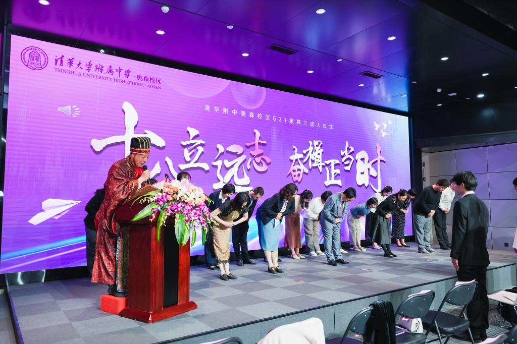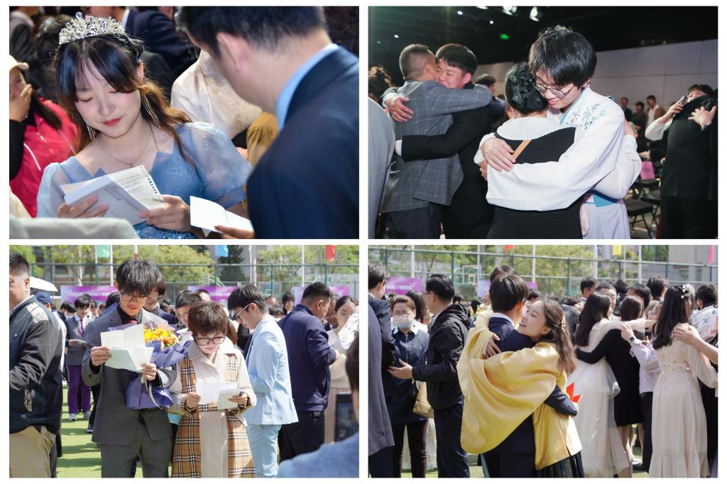 一封小小的家书,架起了父母与孩子心灵沟通的桥梁。家长与孩子交换家书的环节将成人礼的气氛推向了高潮。学生和家长们看着对方写给自己的信,心中感慨万千,很多父母和孩子更是留下了感动的泪水,深情相拥。随后在司仪的主持下,父母为孩子们行成人之礼,孩子们向父母深深鞠躬,感谢父母的养育之恩。