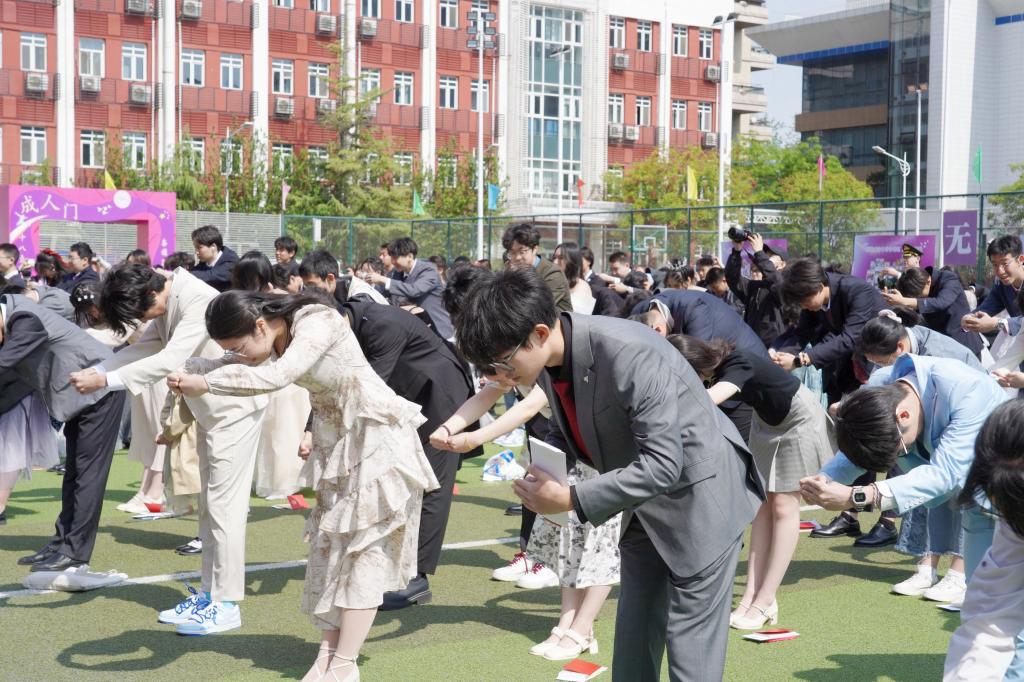怀着对未来的憧憬,学生们在家长的陪伴下,在师长们的祝福下,缓缓走过成人门,成人仪式正式拉开序幕。