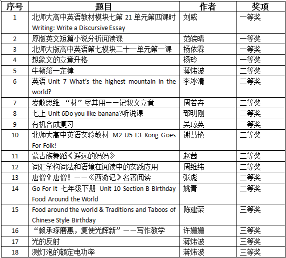 2020年8月31日,北京市第三届“科研课题研究录像课”评选结果揭晓,皇冠体育共有18篇教师论文获奖。其中,4篇获一等奖,10篇获二等奖,4篇获三等奖。
