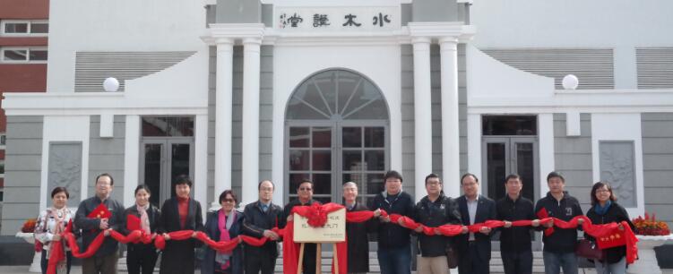 大家走到水木讲堂门前,共同为水木讲堂大门揭幕,并合影留念。