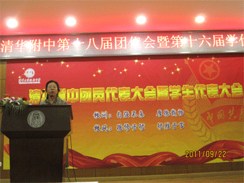 本次大会由团委学生会秘书长古风同学主持。会议在庄严的国歌声中拉开序幕。与会领导和教师为即将离开团委学生会工作岗位的高三和初三年级同学颁发了证书及纪念品,高0901班王乐昕同学作为团委学生会干部代表发表了感言。团委副书记笪颢天同学作了第十七届校团委工作报告,学生会副主席马伊腾同学作了第十五届学生会工作报告,工作报告对一年来团委学生会的工作进行了充分总结,并提出了有建设性的展望。