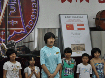 胡军老师(左)致欢迎辞乐团 学生团长谭可儿发言