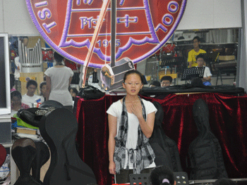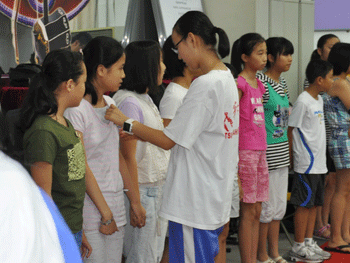 为新生佩戴乐团胸牌 乐团新初一同学作自我介绍