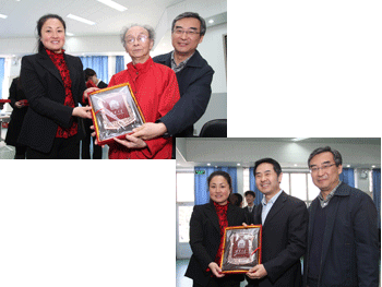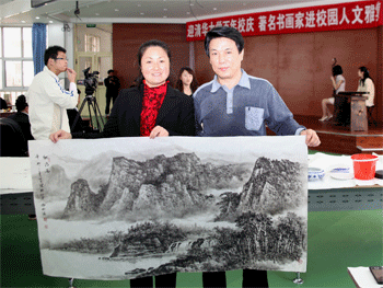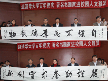 向书画家赠送清华大学百年校庆纪念品 书画家现场书法
