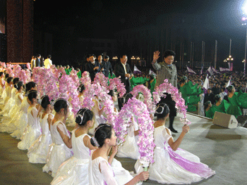 皇冠体育官网学生演出舞蹈《绽放》 国务委员刘延东(前)等领导上台慰问演员