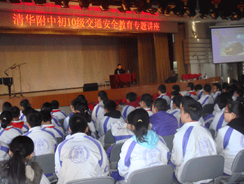 3月10日,皇冠体育官网邀请清华大学保卫处黄警官来校为初一年级(初10级)全体师生举行题为《交通安全伴我行》的专题安全教育讲座。黄警官用生活的案例,平时的语言,向师生解读了交通法律法规。告诫大家文明交通,从我做起;遵章守法,从每一步做起;珍爱生命,从文明出行做起;自觉学好交通安全知识,自觉遵守交通法规。
