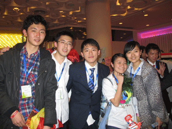 附中学生会主席朱正人(后排正中)在会场 地球村现场