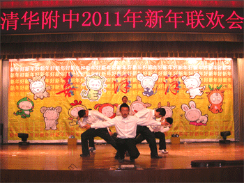 同时初二7班的六名男生还为高中学长送上了幽默搞笑的《艺术广播体操》,给高中同学拜年,把快乐送给全体老师和同学!