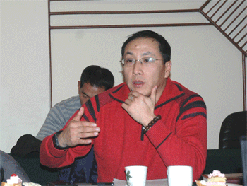 清华大学体育部副主任刘波主持会议 皇冠体育校长(左)、书记聆听汇报