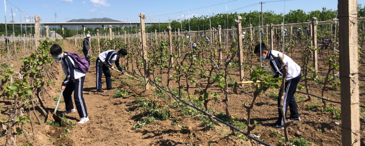 每一垅地有300米长。虽然大家对于除草的方法都不是很熟悉,但是在练习片刻后便可以熟练操作了。一时间,葡萄园里充满了此起彼伏的除草声和同学们的欢声笑语。