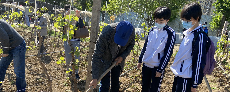 火辣辣的太阳照在身上。没多久,同学们汗流浃背,腰酸背疼。平常能轻松完成的300米,此时显得无比漫长。再加上还得时时注意保护葡萄的嫩芽,同学们因此格外小心。遇到锄头不方便操作之处还得用手拔除杂草,弯腰劳作了一个上午后,很多同学手上都起来水泡。