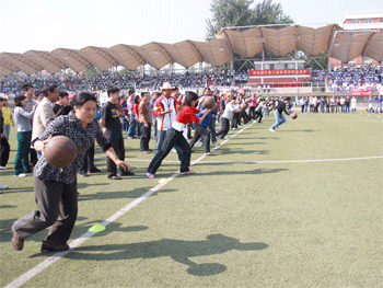 为丰富教工生活,增进教工友谊,锻炼教工身体,9月30日上午,在皇冠体育官网第73届秋季田径运动会上,皇冠体育官网工会举办了教职工篮球运动接力赛。为举办好本次比赛,各工会小组在赛前进行了充分的准备、动员和演练工作。比赛在全校三千多名学生和教工的呐喊声中展开,各工会小组的精兵强将们运球出击,你追我赶,带动了全场师生的无比热情,比赛获得了圆满成功。最终,数学工会小组获得第一名,语文工会小组获得第二名,政史地、国际部、生物化学三个工会小组并列取得第三名。