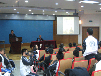 随后,马鼎盛先生就中国国际战略中的双边关系、朝鲜战争的爆发过程等一系列问题,对同学和校友进行了回答。会后,马先生将自己的著作作为礼物送给了学校,整个活动在愉快与争论并存的良好气氛中结束。