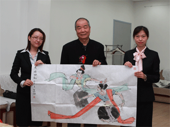 著名书画家张道兴(中)现场作书 著名书画家龚建新(中)现场作画