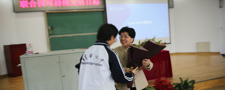 高19级学生为陈冯富珍院长献花