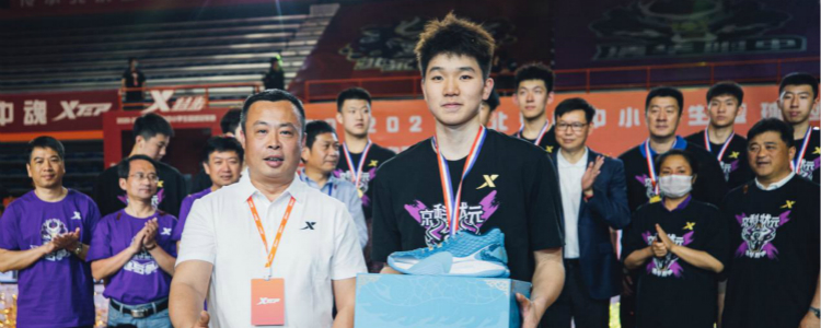 特步集团CEO特别助理李彤(右一)为冠军球队颁发奖品