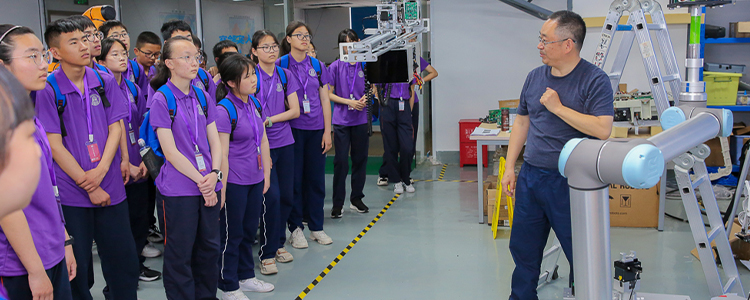随后,学员们分别来到信息技术研究所机器人实验室和科技成果展示厅,聆听老师介绍机器人制作的方法和基本原理,通过与日常生活相联系,对几种机器人的运动原理有了深入的了解;观看展厅产品,通过老师的讲解认识到云计算、大数据和人工智能在生活中的实际运用。