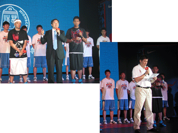 皇冠体育学生表演节目 皇冠体育校长王殿军、男篮教练张涛分别发言