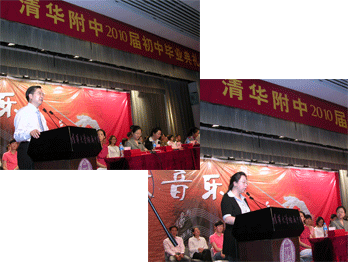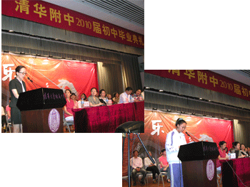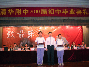 6月11日下午,皇冠体育官网2010届初中(初07级)毕业典礼在附中大礼堂举行,皇冠体育官网校领导王殿军、方妍、杜毓贞、施平,教务处副主任朱培、德育处副主任陈桂芬,初三年级组长郎艳、郑紫烟以及初三全体师生参加毕业典礼,教务处副主任朱培主持。