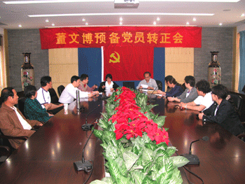 会议严格按照规范的程序进行。先由董文博同志汇报自己在预备期期间的表现,肯定成绩和进步,找出缺点和不足,表明态度和决心,向党组织说明有关问题,并提出转为正式党员的请求;联系人刘俊、王英民同志介绍了董文博同志在预备期期间的表现和意见;王德江同志宣读支委会对董文博同志的考察意见;与会党员对董文博同志一年来在思想、工作、学习等方面的表现进行了认真讨论,并给予了充分肯定,同时也提出了希望和要求。最后,经支部全体正式党员无记名投票表决,一致同意董文博同志按期转为中国共产党正式党员并报请上级党委批准。