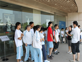 参观前带队老师向同学们说明注意事项 同学们认真听博物馆讲解员讲解