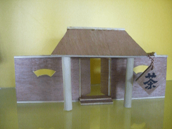 谭蛟瀛同学设计制作的《机械钟》作品 闵冠同学设计制作的《古代茶馆门庭》作品