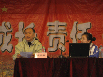 李学森老师(左)与连漪同学讲授团章 学生代表张赫佳发言