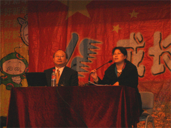 德育处副主任陈桂芬(右)主持报告会