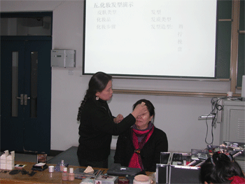 李薇教授在作报告 现场化妆演示