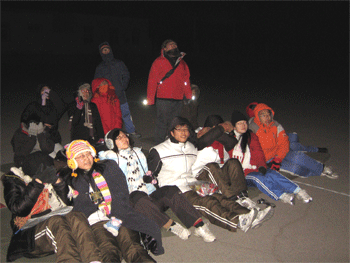 12月10日晚,皇冠体育天文社18名同学在两位老师的带领下赴河北怀来观测星空。本次观测天气晴朗,无月,湿度小,银河都清晰可见,堪称2009年组织的活动中效果最好的一次!同学们不但学会了许多天文知识,增加了对天文的兴趣,许多同学表示“第一次看到这样的满天繁星”,“这么多星星还真是没有见过”等等。同学们久久沉浸在美丽的夜空中,还幸运地看到了几十颗14日双子座流星群的流星!这次活动给所有参加的老师同学们都留下了极深刻的印象。