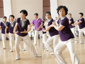 为了掌握这套全新的拳法,附中老同志们从去年10月份开始学习,并坚持每周训练。教练邢淑兰老师非常认真负责,将动作分解到每一细节,耐心辅导;所有参赛人员一丝不苟、悉心学练。(摄影:杨津光老师)