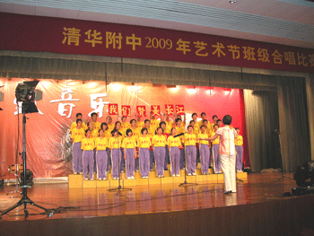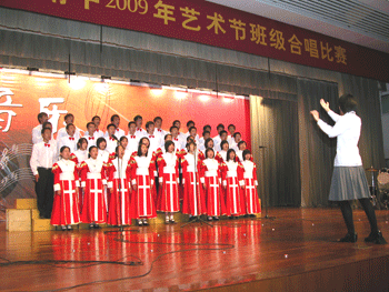 本次合唱比赛由附中艺术中心主办,第一场由高一年级组以及外语教研组联合推出,以中英文两首曲目展示各班风采。在第二场和第三场比赛中,初一、初二的小同学们也以两首中文歌曲,穿插朗诵竞相展示各班风采。今年恰逢我们伟大的祖国建国60周年,《我和我的祖国》、《长江之歌》、《北京欢迎你》、《彩色的中国》等歌曲,饱含对地震灾区同胞们的深切关爱和对祖国母亲的热情赞颂。“中国加油”振奋着在座的每一位师生。烛光、彩带、舞步、乐队,诗歌和着青春的旋律诠释着皇冠体育师生的灵感与激情。此外,高二年级王上同学为学弟学妹们表演了男声独唱《天边》,校合唱团的师生们也以精彩的演出为合唱节助兴。