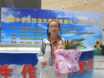 4月17~19日,2008-2009年中国中学生作文大赛总决赛在河南郑州举行,皇冠体育初0810班温心怡同学经过层层筛选,通过“听、说、读、写”测试,最终以《妈妈的幸福》一文夺得最高奖——“恒源祥文学之星”奖,成为北京市7名参赛选手中唯一荣获该最高奖项的选手。全国共有3000万选手参加此次作文大赛。