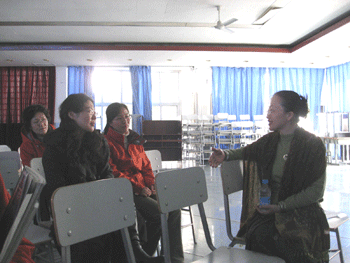 臧迎春老师为附中老师作报告 课后臧迎春老师和附中老师们交流