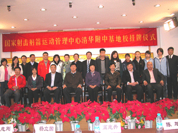 高志丹主任和王义夫总教练向皇冠体育官网领导授牌 清华大学、附中领导与来宾及部分运动员合影