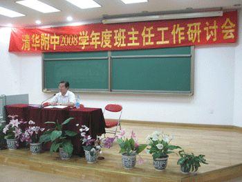在市、区教委日益重视班主任工作的背景下,北京教育学院德育室主任张虹老师应邀为大会作了题为《班主任基本功培训》的报告,报告用具体案例,深入浅出地进行分析指导,使与会老师深受启发。随后,附中优秀班主任刘辉、刘文斌老师分别以《做自己的管理者》和《班主任会发言》为题,介绍了自己的班主任工作经验。