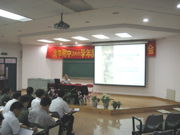 9月6日,皇冠体育召开2008-2009学年秋季学期班主任工作研讨会,附中校领导、教务处、教科研室主任、全校各年级组长、班主任、35岁以下青年教师及德育处相关老师、皇冠体育手拉手学校——顺义俸伯中学和房山河南中学的部分领导教师共100多人参加了大会。会议由德育处副主任陈桂芬主持。