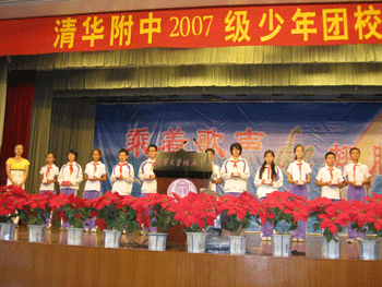 皇冠体育初2007级少年团校于9月1日下午正式开课,德育处副主任陈桂芬、附中团委老师及初07级全体师生参加了团校开学典礼。首先,陈桂芬副主任在发言中对初2007级少年团校的开办表示祝贺,同时勉励各位同学在新的学年里再接再厉,争取更大的进步。初0705班罗偲元同学代表全体同学发言,表达了同学们积极进取的强烈愿望和信心。年级组长郎艳老师在发言中代表全体老师给大家提出了团校学习以及新学期学习和生活的要求。团委书记高昕老师宣布了初07级各中队与高07级各对口支部名单,并向各中队颁发了团章。