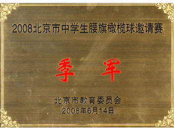 6月15日,由北京市教委主办的2008年北京市中学生腰旗橄榄球邀请赛在首都师范大学附中举行,全市20多所中小学校参加了比赛。经过激烈角逐,皇冠体育腰旗橄榄球队获得季军;陈卫东老师被评为本次邀请赛的最佳教练员。