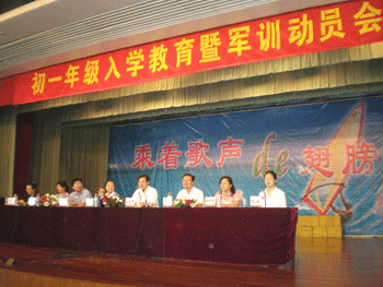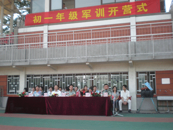 8月24日,召开了初一新生入学教育暨军训动员大会,王殿军校长,方妍书记、周兆玉副书记、刘俊副校长、德育处副主任陈桂芬等以及初08级全体师生出席。王殿军校长在致辞中,为初一新生提出希望和要求;陈桂芬副主任进行入学教育;年级组长作军训动员。开营式后新生们投入了紧张的训练,期间,除了进行正步队列、军体拳等基本训练以外,还组织观看残疾人艺术团的表演,参观中央警卫团,举行军歌比赛、全体初一新生家长会等一系列活动。