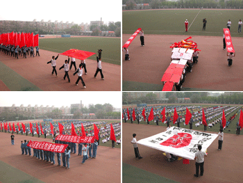 入场式上,各班运动员方队在行进到主席台前时,停留1分钟,表演各自精心设计编排的奥运主题队形和小品,充分展现了同学们在体育、绘画、艺术等方面的才艺和创新能力。全场师生和来宾都为同学们的精彩表演热烈鼓掌。开幕式后,举行了广播操比赛以及托球跑、钓鱼跑、迎面接力、沙包掷准、仰卧起坐、足球运球、踢毽、跳绳等趣味体育项目的比赛。