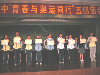 5月4日下午,皇冠体育官网校团委组织举办“纪念建团86周年,迎接团的十六大——青春与奥运同行”主题大团日活动,海淀区教工委书记乔键、区团委书记刘昊及附中领导出席了表彰大会,并兴致勃勃地参观了支部特色展示活动。