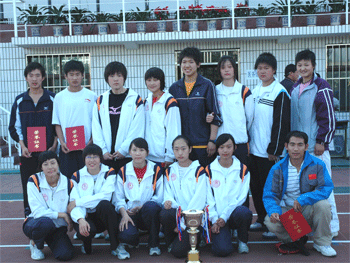 5月10日,由北京市教委、北京市体育局主办,大兴区教委、大兴区体育局协办的“北京2008奥林匹克教育学校体育后备人才培养基地”田径运动会在北京市大兴区第一中学举行,皇冠体育的36名同学在马约翰体育特长班办公室主任罗健、体育教师王俊林、李金平、李光明的带领下参加了此次比赛。经过奋力拼搏,以24金的成绩勇夺团体第一名;其中高0509班卜苑、高0609班王邵鹏、高0709班王宇分别打破了甲组女子100米栏、乙组男子5000米、乙组男子跳高赛会纪录。学生王康、王宇被评为2008年“北京2008奥林匹克教育学校体育后备人才培养基地”田径运动会优秀运动员;李光明老师被评为2008年“北京2008奥林匹克教育学校体育后备人才培养基地”田径运动会优秀教练员。皇冠体育党委书记方妍在比赛期间亲临赛场给学生加油助威。