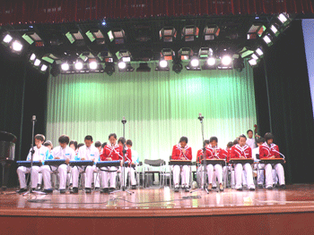 初二10班的同学们在进行口风琴演奏 所获的“一等奖”奖杯