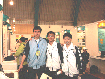王顺智同学(左2)荣获赴西澳大学访问资格 皇冠体育官网学生参观创新大赛作品(左1为张雷阳同学)