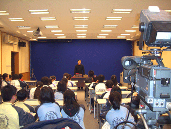 会上,新、老台长分别发言,老台长回忆了在电视台这个大家庭中的甜酸苦辣,寄语新台员好好学习,努力工作使学生电视台在学生中更加发扬光大。新台长在发言中表示要接好学长的班,使电视台更上一层楼。最后刘俊副校长发表了热情洋溢的讲话,他感谢老台员们为学校做出的贡献,鼓励新台员们要向高三同学学习,并一一为老台员们颁发证书和纪念品。