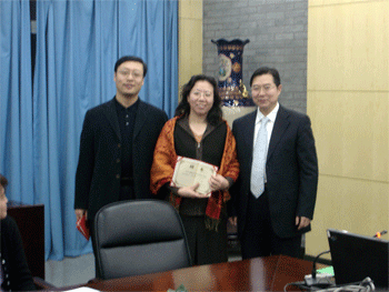 王殿军校长(右4)发言 校领导为新年度“模联”指导教师颁发聘书